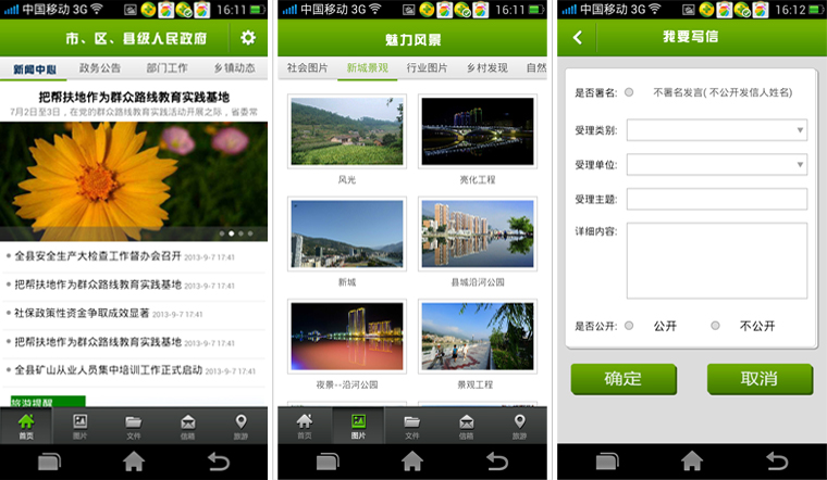 政府網安卓智能手機應用程序,依托資訊、政務信息、公眾互動、和主題服務等資源實現與政府網站資源的同步更新。實現了解政府、新聞資訊和在線咨詢與辦事的公眾提供隨時隨地的服務。